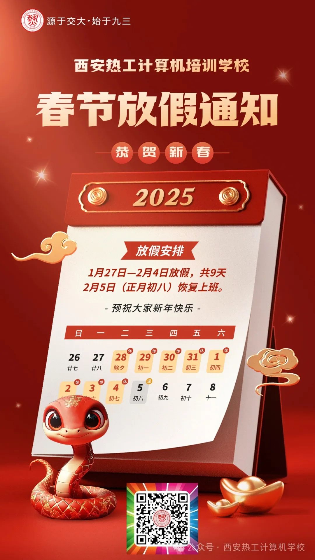 西安热工计算机培训学校春节放假通知
